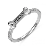 Este anillo de hueso grabado personalizado es un accesorio delicado y con mucho significado, ideal para dueños de mascotas que quieren llevar siempre un recuerdo de su peludo cerca. Su diseño sutil en forma de hueso lo convierte en una pieza única, y con la opción de grabado puedes hacerlo aún más especial.
