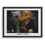 Celebra la grandeza de tu mascota (¡o de ambos!) con El Dúo Majestuoso, un retrato personalizado que transforma a tu peludo compañero en parte de una pareja real digna de admiración. Ya sea como Rey y Reina, Conde y Condesa, o dos nobles caballeros, este diseño captura su personalidad con un toque de elegancia clásica y estilo artístico único.