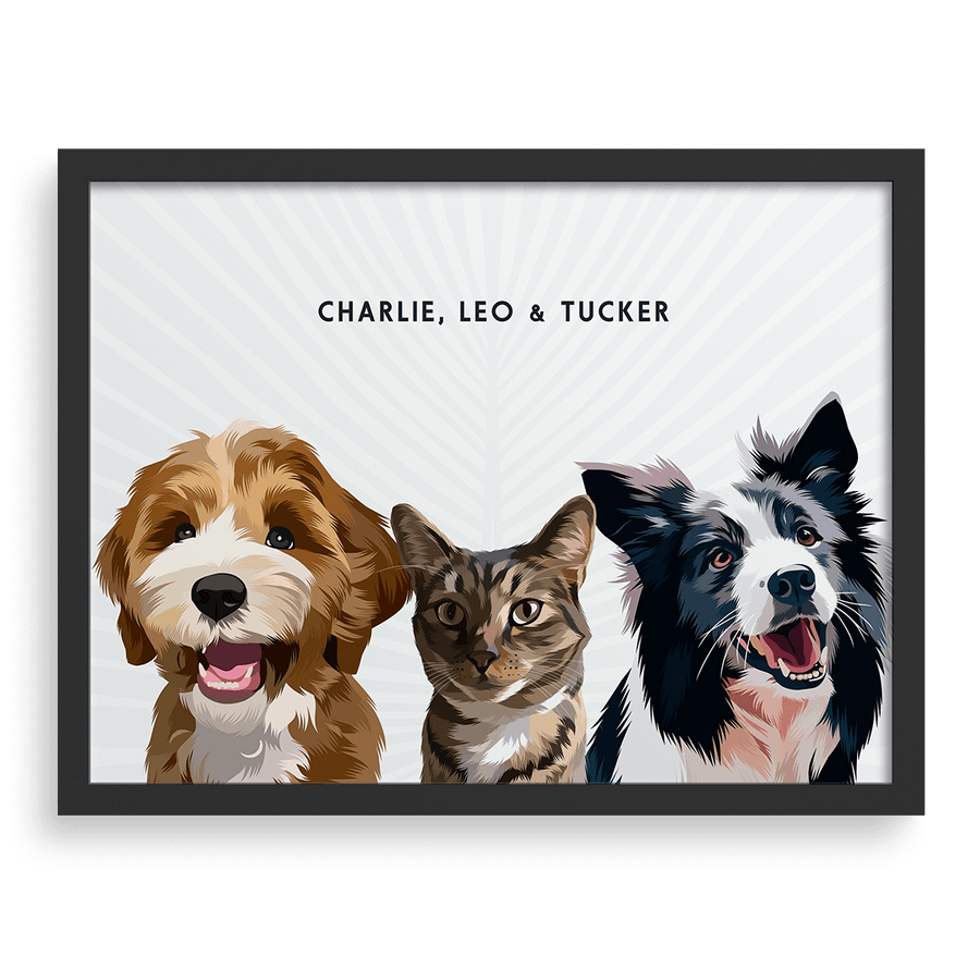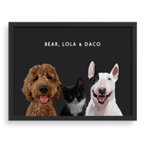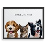 - Retrato totalmente personalizado con tres mascotas
