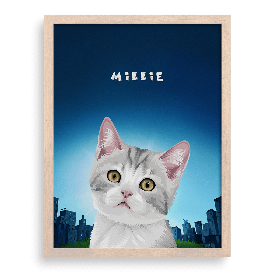 Este retrato personalizado de mascota al estilo Dog Man es una divertida y original forma de rendir homenaje a tu fiel compañero. A partir de una foto real, nuestros artistas recrean a tu perro, gato u otra mascota como si fuera parte del universo de cómics de Dog Man, con colores vibrantes y un toque caricaturesco lleno de personalidad.